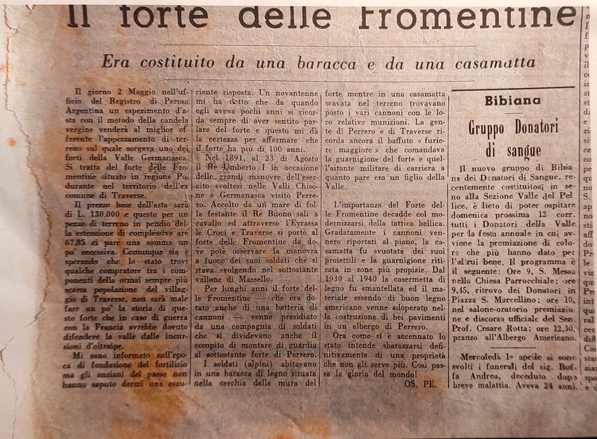brevissima distanza dal villaggio del Perrero e prese posto in un