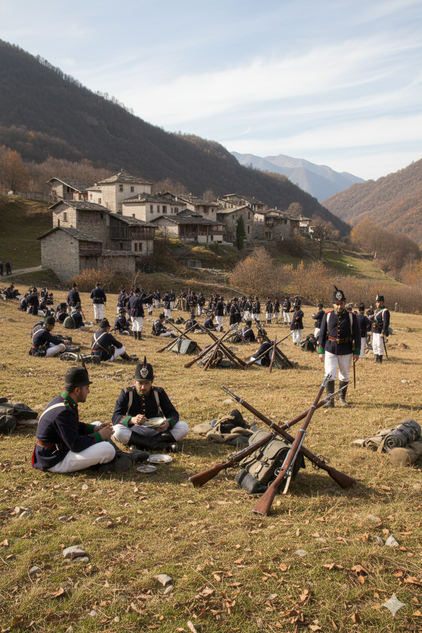 1. Nella sera del 21, arrivo e sfilata delle truppe nel paese.